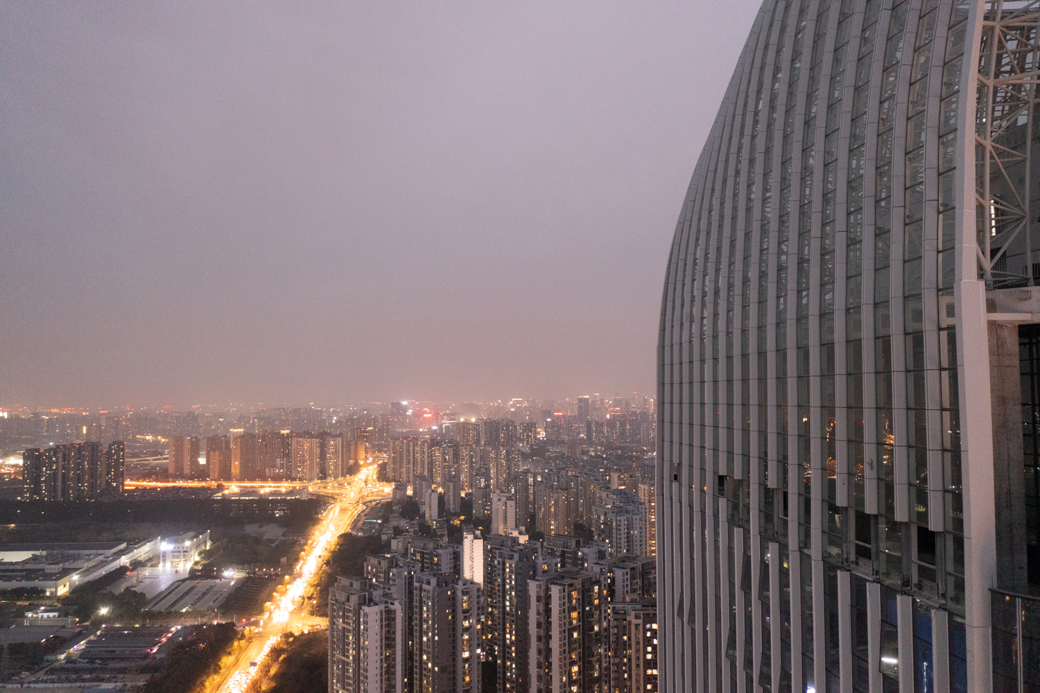 項目建設(shè)用地位于成都市三環(huán)外東南方,驛都大道與成龍大道之間的東部發(fā)展片區(qū)——成都重要的旅游休閑地塊三圣鄉(xiāng)片區(qū),隸屬于成都市錦江區(qū),用地性質(zhì)為商業(yè)服務(wù)業(yè)設(shè)施用地。項目用地位于錦江區(qū)東洪路以東、梔子街以南、喜樹街以西、成龍大道以北。場址地理位置優(yōu)越,交通便利,水、電、路、通訊等配套基礎(chǔ)設(shè)施較為齊全,建設(shè)條件齊備。項目包括超高層辦公和多層街區(qū),總建筑面積237,900平方米,其中地上184,192平方米,兩層地下室,超高層塔樓共計60層,建筑高度258.25米,多層街區(qū)包含媒體中心、展示中心和體驗中心等,共計4層,建筑高度20.65米。項目各個功能區(qū)通過立體連廊相互聯(lián)系,有效對接。