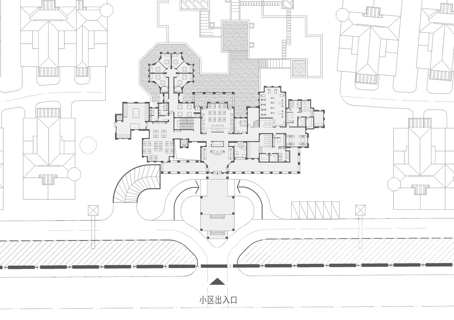 住宅區(qū)立面采用簡潔歐式的造型,主要用材為石材和劈巖石,建筑形象尊貴、大氣,呈現(xiàn)原汁原味的歐式風情。