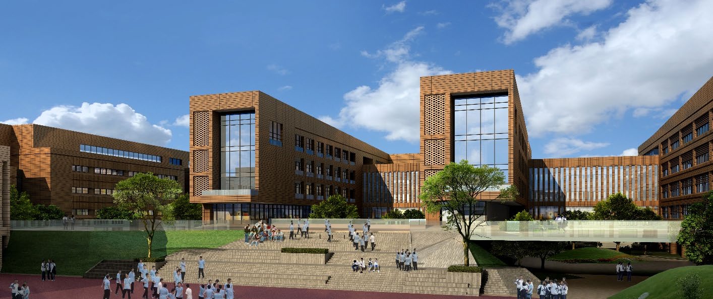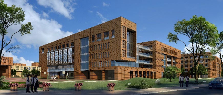 貫穿南北設(shè)置承載歷史文化的主軸空間作為公共區(qū),圖書館作為標(biāo)志性建筑置于入口廣場(chǎng),與北側(cè)體育館相呼應(yīng)。
