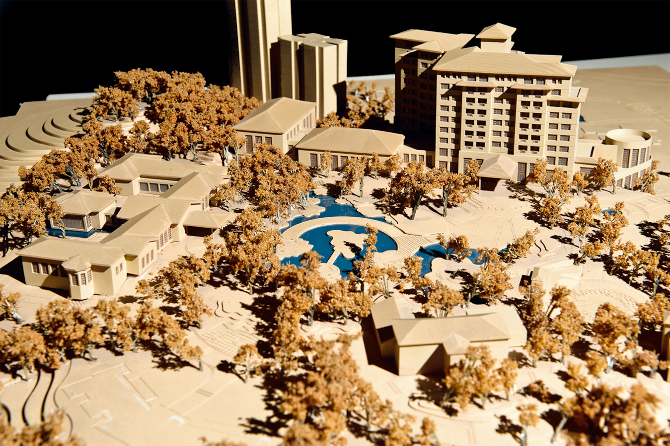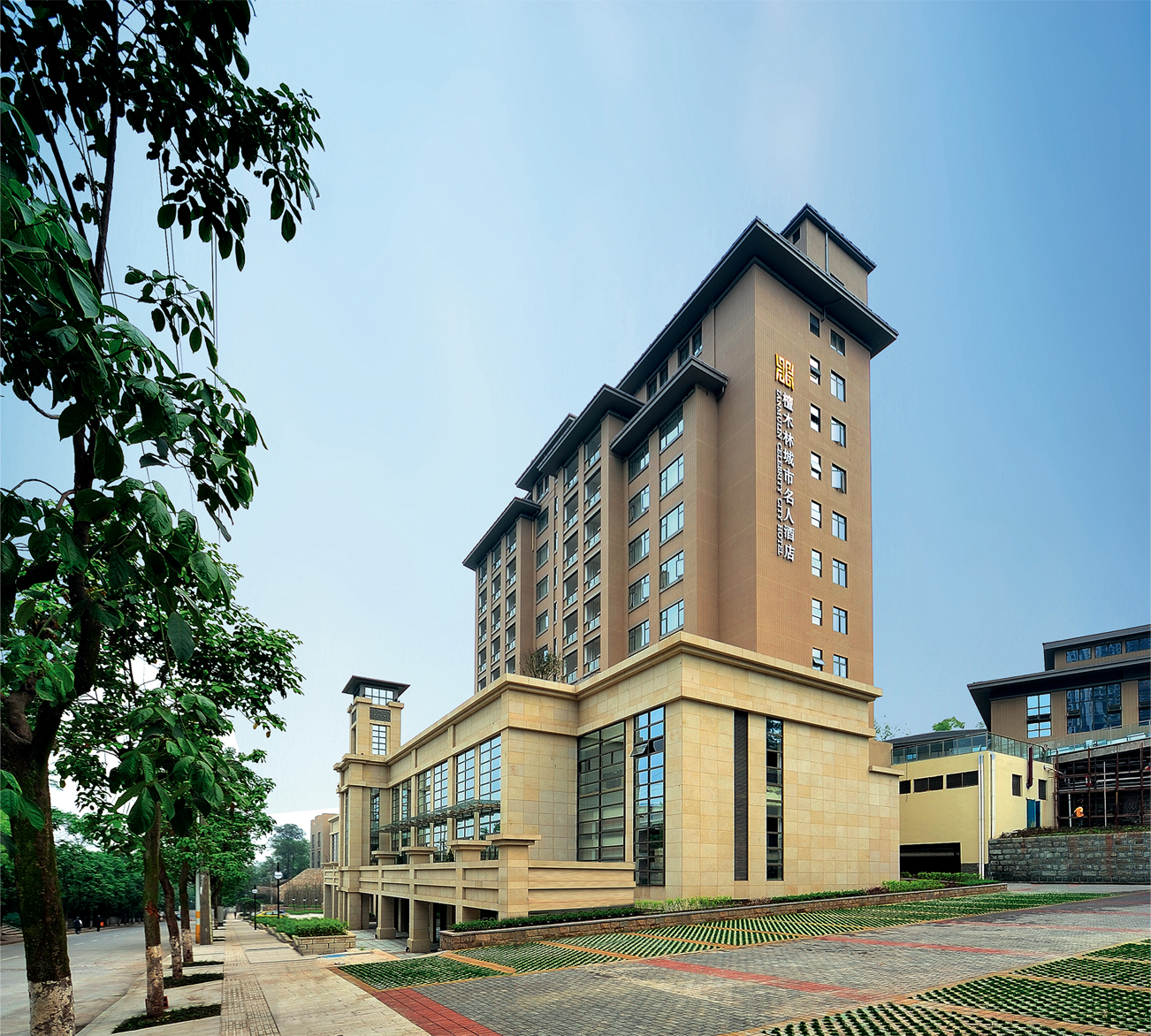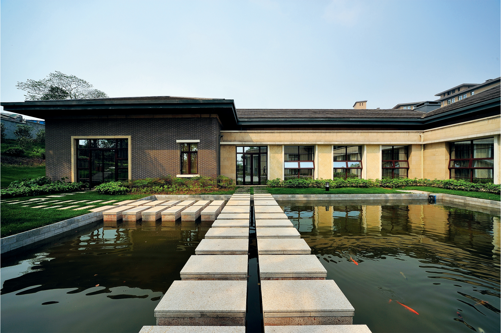 本案設計中采用圍合式規(guī)劃布局,將酒店內部的庭院空間最大化釋放,整體建筑風格以“新古典主義”配以地區(qū)特色的裝飾元素,體現(xiàn)穩(wěn)重高貴的氣質,景觀的主要概念源于自貢市的三大特色之一的燈籠,互相連接、包含的景觀元素,正是沿用了大小不一的燈籠連接一體的形態(tài)特征,置身其中,每向前邁一步,都有不同的景色出現(xiàn)在眼前,所有設計元素組合在一起最終形成與自然統(tǒng)一和諧的園林式五星級酒店。