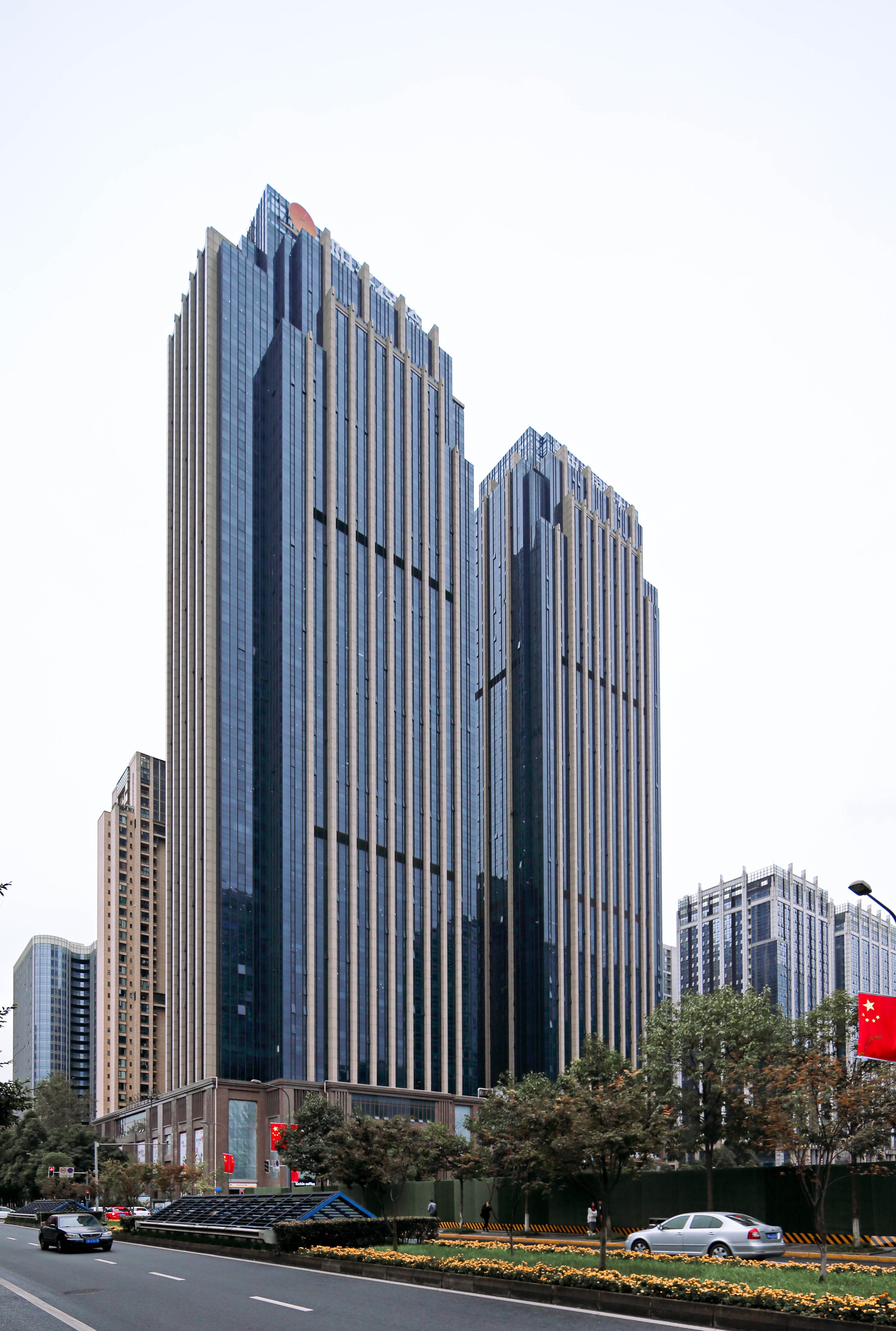 項目位于成都高新區(qū)金融總部商務區(qū)14號地塊。項目包含兩棟197m高的甲級寫字樓和公寓式辦公樓、兩棟115m至128m高的住宅,以及四層商業(yè)裙樓組成的大型商業(yè)綜合體。建筑設計采用簡潔的里面設計風格,采用頂層錯落的手法,盡可能地減小建筑容積率高、體量過大與基地面積過小的矛盾。裝飾性和現(xiàn)代性的設計風格,體現(xiàn)了建筑更加端莊與挺拔,體現(xiàn)了企業(yè)不斷超越的人文精神和力量。