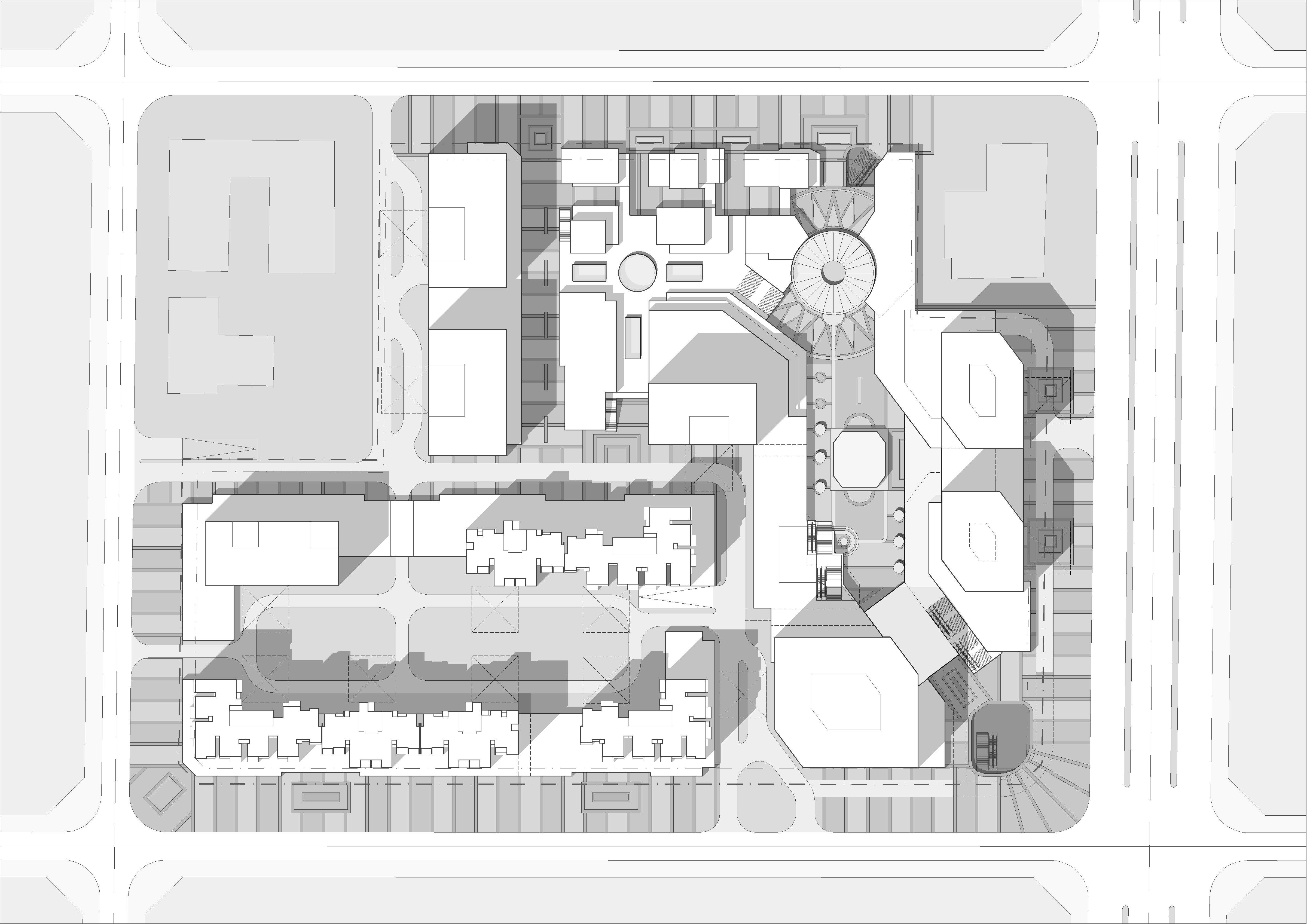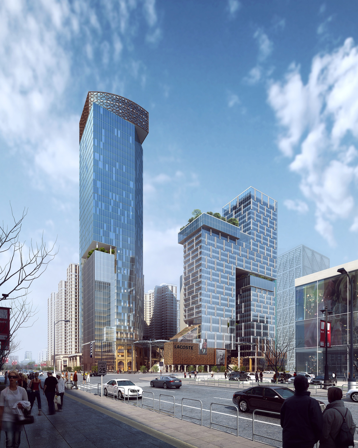 設(shè)計(jì)提取唐長(zhǎng)安絲路起點(diǎn)多文化交融的概念,還原長(zhǎng)安海納百川的集市文化,通過(guò)上城與下城的方式和體驗(yàn)式的現(xiàn)代商業(yè)模式結(jié)合,形成獨(dú)特的商業(yè)空間,將幾大主題即:絲路風(fēng)情金街、商業(yè)主圖公園、旅游文化消費(fèi)目的地的空中開(kāi)放式城市客廳有機(jī)結(jié)合,創(chuàng)造全新的商業(yè)體驗(yàn)空間。同時(shí)在項(xiàng)目?jī)?nèi)設(shè)置 150 米超高層,由高端甲級(jí)辦公與豪華五星級(jí)酒店組成,成為項(xiàng)目的制高點(diǎn)與形象展示,為整個(gè)片區(qū)帶來(lái)最高端物業(yè)。隨著項(xiàng)目的深入設(shè)計(jì),包括景觀、雕塑、室內(nèi)空間的交互,都在進(jìn)行深入的思考,力圖為古城西安帶來(lái)一個(gè)精彩的建筑作品,一個(gè)人人樂(lè)在其中的地標(biāo)建筑。